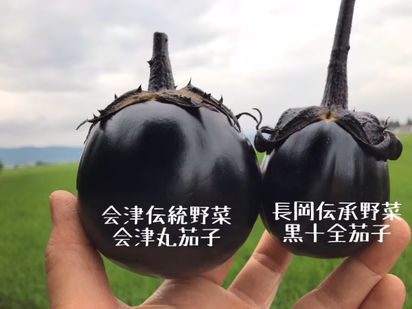 『会津伝統野菜 会津丸茄子』と『長岡伝承野菜 黒十全茄子』をセットにしました〜