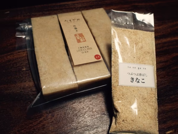 農薬不使用栽培の大豆あやこがねでつくった手づくりきな粉1袋とのセット商品です。