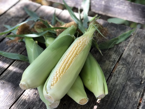 今年の長雨の影響で、小さなサイズのとうもろこしがたくさんとれました。