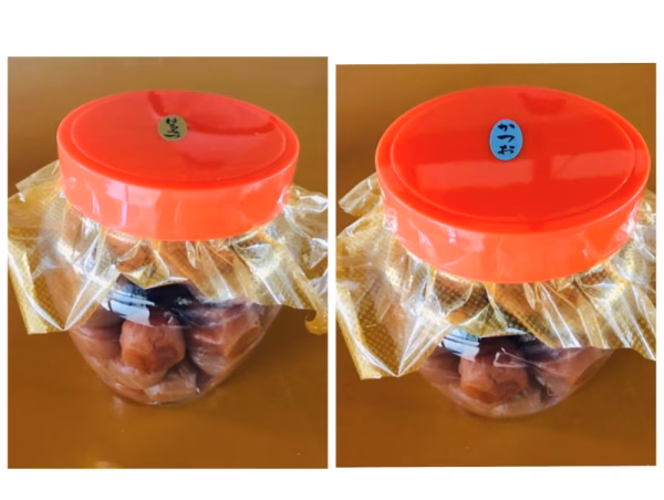 かつお梅   紀州南高梅、しそ、鰹節、漬け原材料(食塩、還元水飴、砂糖、発酵調味料、醸造酢)、酒精、調味料(アミノ酸等)、甘味料(ステビア)、ビタミンB1、(原材料の一部に大豆を含む) 原産地   紀州(梅) 内容量   1kg 賞味期限  製造日より4ケ月 製造者   輪玉農園       和歌山県田辺市上芳養3298 商品名  紀州はちみつ梅 原材料  紀州南高梅、漬け原材料(食塩、還元水あめ、醸造酢、      たん白加水分解物)、はちみつ、調味料(アミノ酸等)、      甘味料(ステビア)、酒精、      ビタミンB1(原材料の一部に大豆を含む) 原産地   紀州(梅) 内容量   1kg 賞味期限  製造日より6ケ月 製造者   輪玉農園       和歌山県田辺市上芳養3298