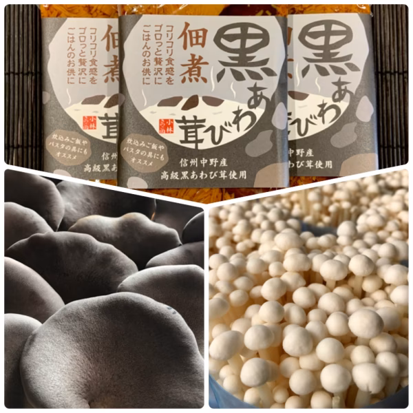 小林きのこ園が丹精込めて育てた「黒あわび茸」と「えのき茸」を使った佃煮が登場しました。