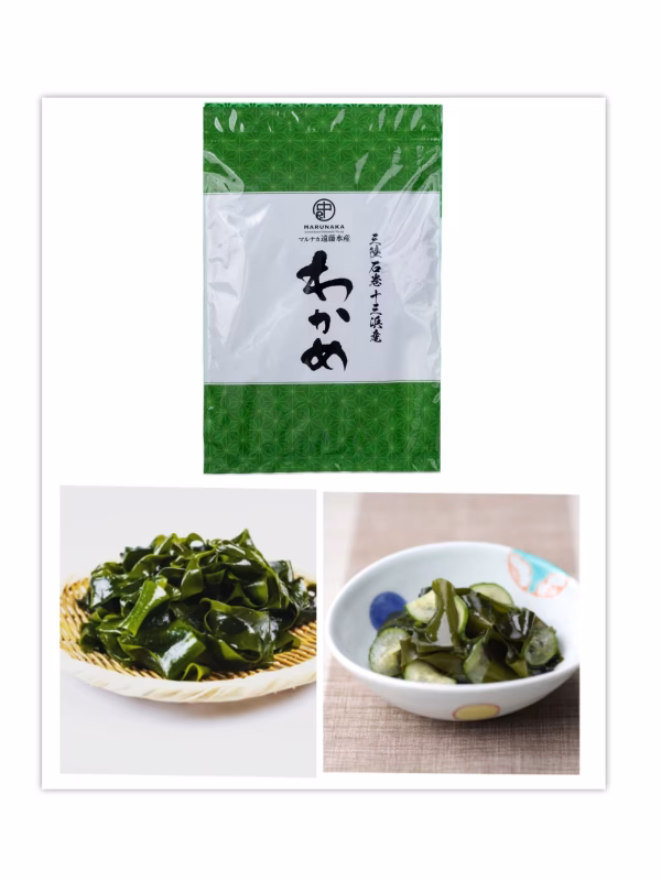 - ●わかめ 名称:湯通し塩蔵わかめ 原材料:わかめ(十三浜産)、塩 内容量:120g 製造者:宮城県石巻市北上町十三浜字大指89-2 ㊥マルナカ遠藤水産 遠藤俊彦