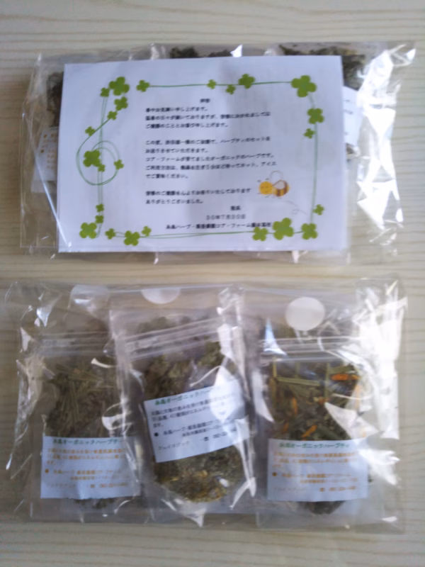 糸島ハーブ薬香農園で育てた無農薬ハーブを、自然乾燥し、オリジナルブレンドハーブティーを作りました。