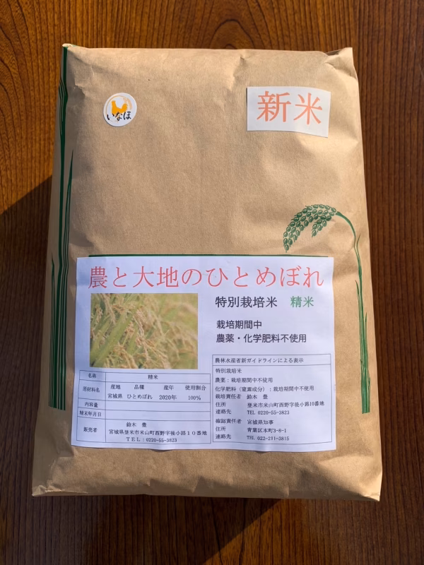 農薬・化学肥料を使用しないで栽培したお米として、宮城県の特別栽培米の認証を取得しています。