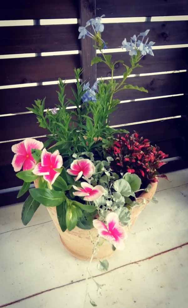 上記植物を可愛いテラコッタに寄せ植えしたおります。