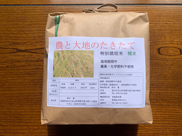 農薬・化学肥料を使用しないで栽培したお米として、宮城県の特別栽培米の認証を取得しています。