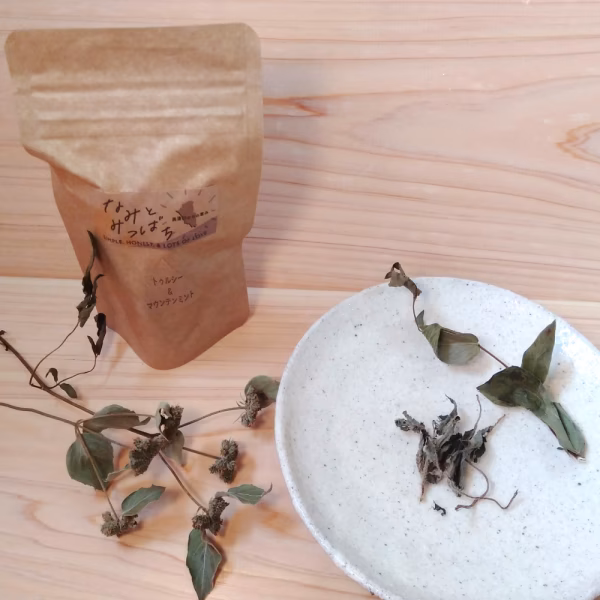 - ●名称:ハーブティ ●原材料:トゥルシー、マウンテンミント(高知県産、農薬化学肥料不使用栽培) ●内容量:8g ●賞味期限:2021/2/19