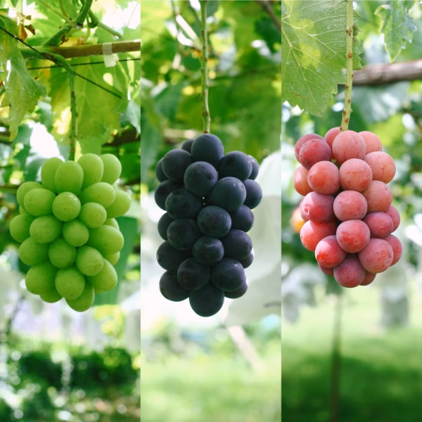 ぶどうの王様”巨峰”、濃厚な甘さと華やかな香りが人気の”安芸クイーン”、そして大粒で爽やかな味わいの”翠峰”を2kg (3〜4房)をセットにしてお送りいたします。