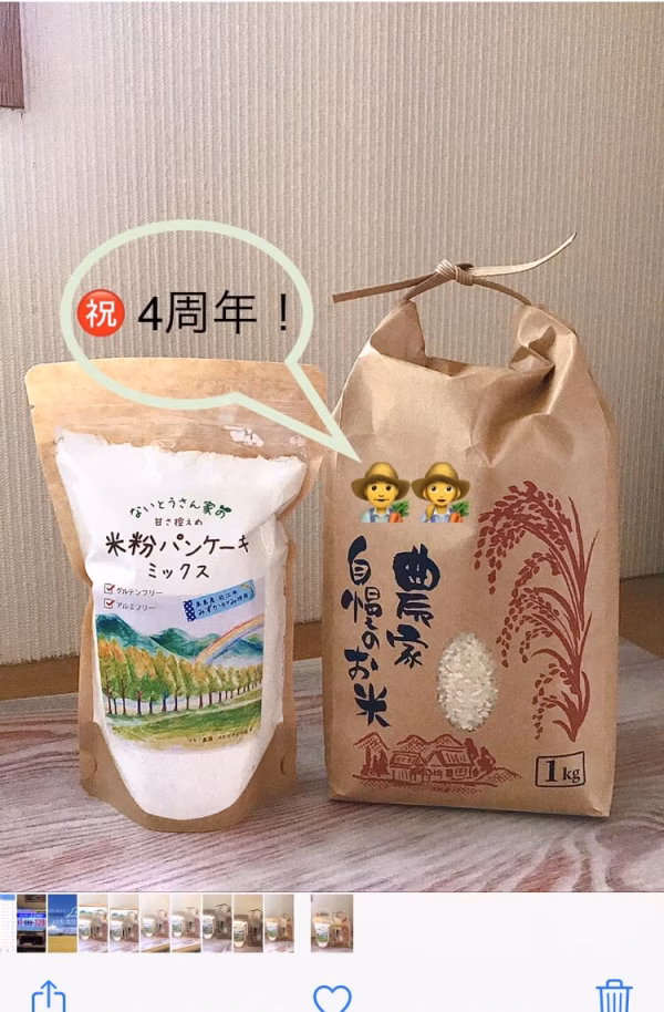 米袋パンケーキミックスには 当園の栽培しました みずかがみ(近江米)を使用しています。