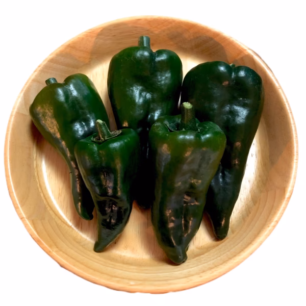 メキシコ原産。深い緑が綺麗な大型唐辛子。生食するとしっかり辛いですが、加熱すると辛味は消えます。中に詰め物をして、焼いたり煮たり。。ピーマンの代わりに使うのもおすすめ!ピリッとしたスパイシーな香りを楽しめます!