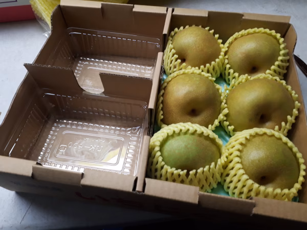 - イチジク、梨共に乾燥しないようにビニールに入った状態で冷蔵保管。イチジクは完熟のためホントお早めに。