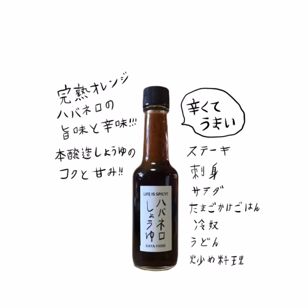 - 品名:唐辛子醤油 原材料名:醤油、唐辛子、本みりん、きび砂糖、ニンニク 内容量:60g 賞味期限:202○/○ 保存方法:高温多湿・直射日光をさけて保存してください 製造者:カヤファーム 楠永泰之 高知県高知市竹島町85-9