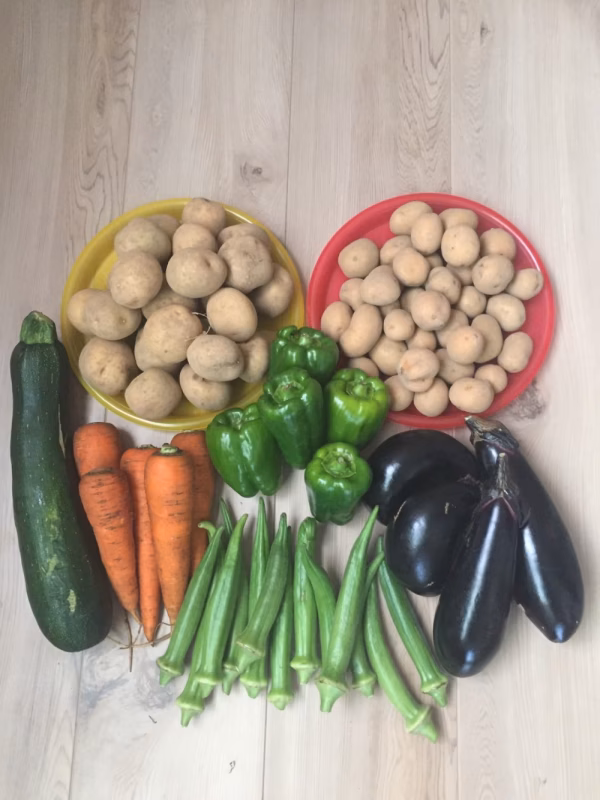 ズッキーニ・にんじん・ピーマン・ナス・オクラの中からその日に採れるお野菜3種をセットさせていただきます。