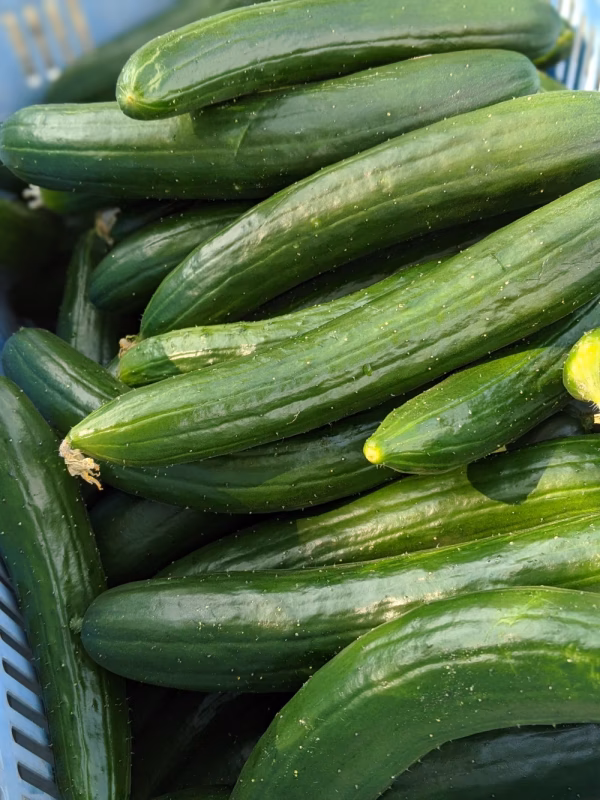 自然豊かな愛媛県東温市で育てた露地きゅうりです。 綺麗な水が流れる畑で有機肥料と乳酸菌を使い 育てました♫しっかりとした歯ごたえがあり味も濃いきゅうりです。 発送当日に朝採りした物を送ります♫ ※なるべくキレイな物を詰めてますが 若干の曲がりやキズも混ざってます。ご了承下さい。  1kgで6〜10本程です。