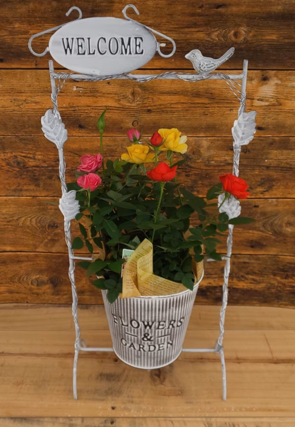 ▼自己紹介 われわれは岐阜県の生産者です。半世紀以上花を育て続けた職人が丹精込めて作ったバラをお客様にお届けいたします。I will deliver excitement! お客様に感動をお届けします。 ▼商品概要 小鳥のとまり木をイーメジした商品です。 玄関先などに飾れる商品なので、ギフトなどの贈り物にも最適です。 ▼品種 コルダーナはドイツの微香性のミニバラ♪花付きが良く花持ちの良さも抜群で、咲き進むにつれて色合いが変化していくので長く楽しむことが出来ます^^その面白いところは咲き始めと開いた時の感じが全然違うことです。 ▼内容 5寸鉢植え  ミニバラおまかせ2色植えで、一番咲き具合がいい状態でお届けしますが、色の選べはご遠慮します。素敵なお花をお楽しみください。*開花状態により多少変わる場合がございます。    ▼管理方法  置き場所:バラは日当たりが良く風通しの良い場所を好みます。梅雨明けからは高温乾燥に注意しできるだけ涼しい場所に置き、夏場は強い日差しや雨の当たらない場所においてください。                  水やり:土の表面が乾いてきたら底鉢から水が溢れるくらいたっぷりと与えてください。天気の良い日の朝が最適で。               肥料:4月から10月までは月に1回を目安に置き肥を鉢の縁に数カ所置きます。与えすぎないように気を付けましょう。 ▼注文に際しての注意点(配送方法や納期指定など) ・植物ですので到着後はすぐに開封してください。 ・画像はイメージです。時期により画像とは少し素材・イメージが変わる場合もございます。 (開花時期以外は、花は咲いていないものとお考えください)
