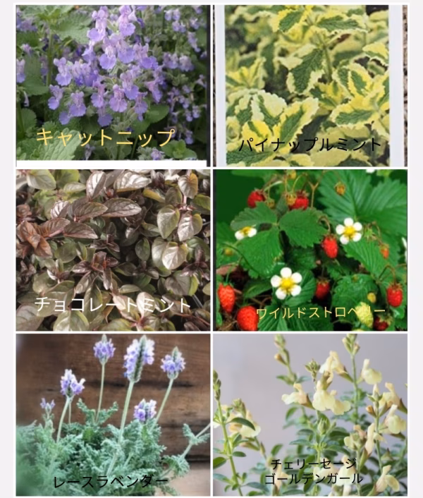 珍しいイエローのチェリーセージを含め、食用にもなるワイルドストロベリー