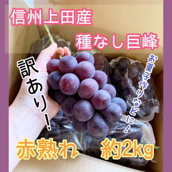 【赤熟れ】信州上田産種なし巨峰約2キロ(4〜5房)