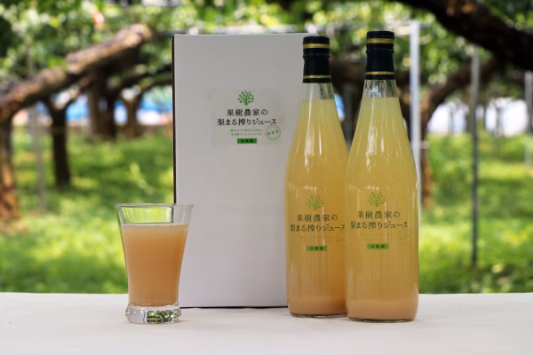 林農園の梨とカボスだけの「100%林農園産」のジュースです。梨の甘みとカボスの酸味がうまく調和した爽やかな味をお楽しみください。主原料とし梨果汁95%、カボス5%です。酸化防止剤などは使用せずカボスを使用。カボスは変色や発酵を防ぐ役割があります。