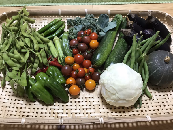 そろそろ夏野菜も終わりそうですが、まだまだ元気な夏野菜と、出始めの秋野菜の中から、5〜6種類での詰め合わせです。