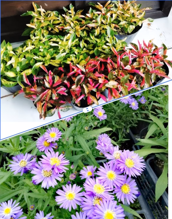 毎年開花のガーデンアスターサファイア&産地より珍しい大葉アキランサス