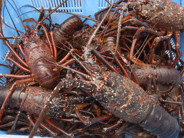 伊勢海老漁師自らが河津町内の見高港に水揚げされる新鮮な朝獲れの伊勢海老の中から1匹で500前後の大きな物を選び出します