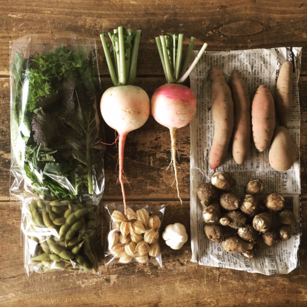 いのち豊かな畑で収穫できる野菜を詰め合わせた定期便です。