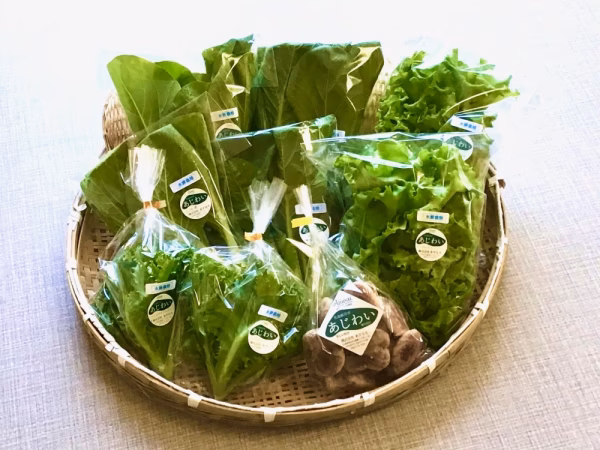 自然水を使い、無農薬、温度、湿度、CO2が管理できるハウスの中で、手作業で丁寧に育てたしいたけと葉物です。