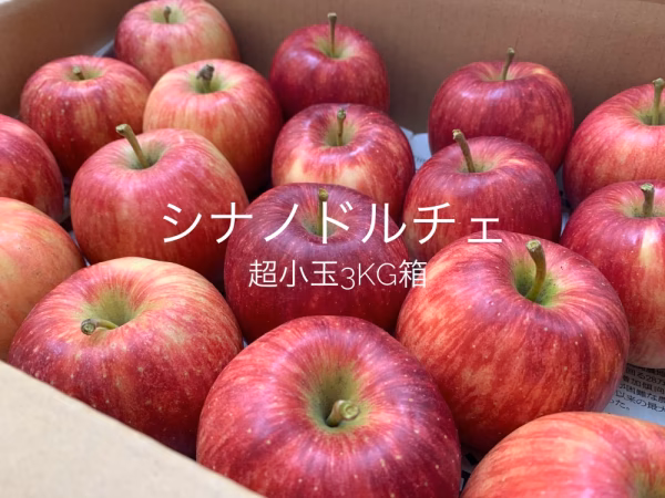2005年に品種登録された長野生まれの品種で、当時の長野県知事・田中康夫氏が名付け親とされています。やや面長(縦長)で、濃い赤のしましまのような色のつき方が特徴。果肉は固め、かじるとザクっとした食感があります。ドルチェ、はイタリア語でデザートを意味するため、甘いのかな?と思われるかもしれませんが…シナノドルチェはやや酸味のあるりんごで、後味に爽やかな甘さが来ます。酸味があり、果肉が固いということで、お料理にもおススメしたい一品です。お子様の手のひらサイズの小さいりんごのため、お子様も、大人も、丸かじりでひとつ楽しめるサイズです。