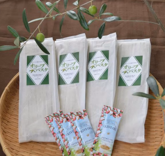 - [オリーブパスタ] 名称:乾麺 原材料:小麦粉、食塩、オリーブ葉(いわき産)