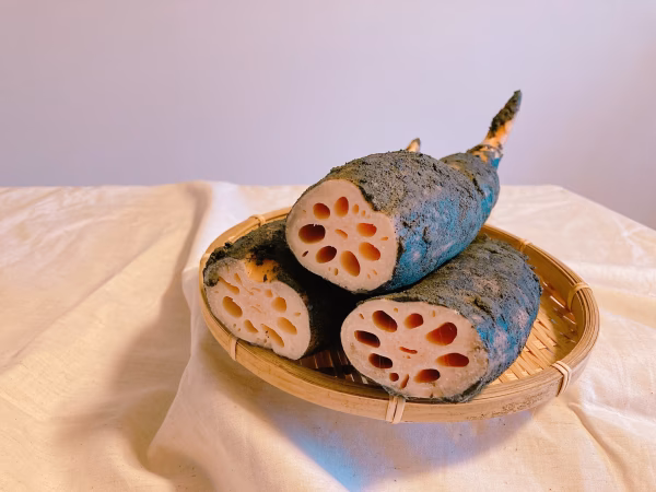 蓮根の品種はロータスホワイトという品種で、夏になると美しい白い蓮の花を咲かせます蓮根本来の滋味深い甘さと、もっちりシャキシャキの食感をぜひご賞味いただけたらと思います。