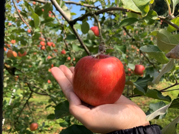 日当たりの良い傾斜地に畑があるので日照時間が長く、とてもおいしいりんごが収穫できます。