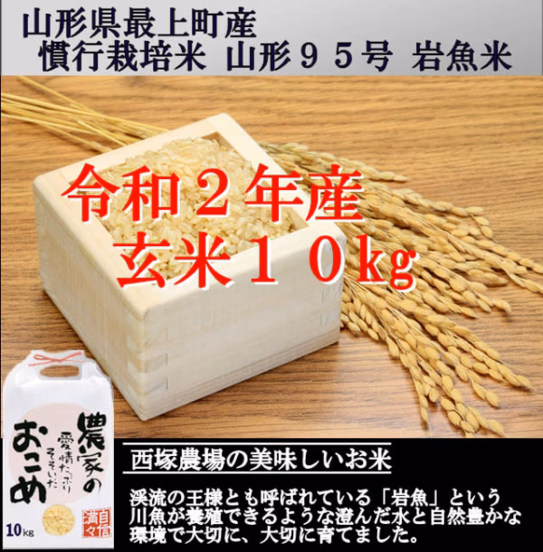 西塚農場産 慣行栽培米 山形95号岩魚米 玄米10kgの商品です。