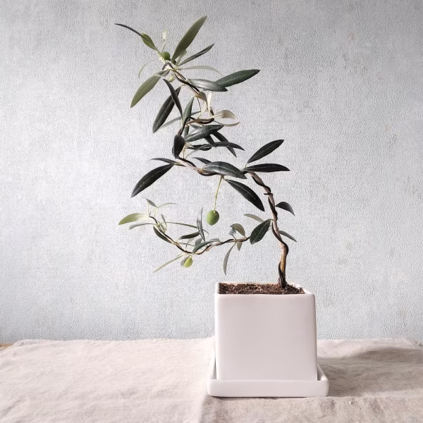 【この商品は食品ではなく、観賞用花卉です。】 おうち時間を、より豊かに。 山梨育ち、山のオリーブ苗木を盆栽にしました。 オリーブは寿命が1,000年を超えるほど生命力が強く、古代から平和のシンボルとして愛されてきました。そのため、結婚や開業などのお祝いに最適です。 明るい室内で育てられます。まだ樹形が固まっていないので、お好みの形に針金を調整していただけます。鉢を変えなければ大きくなりすぎることはなく、比較的、栽培の手間がかかりません。 樹高:約35㎝(鉢底より) 鉢サイズ:W10.5cm×H9cm 年生:2年 掲載写真と同じ盆栽をお送りしますが、成長により掲載時と異なる場合があります。ご了承ください。 2020年9月現在、画像の通り結実しています。 丁寧に梱包しますが、配送時の衝撃や生理現象により実が落下する可能性をゼロにすることはできません。ご理解ご了承の上、ご注文をお願いいたします。 お届け時に管理方法の簡単なプリントを添付致します。 【品種】  アルベキーナ 【特徴】  スペイン原産。自家受粉で結実しやすい。葉が小さめで密につくため鉢植え向き。  【履歴】 山梨県の苗木店から仕入れ、当園で育成、盆栽仕立て。当園での栽培期間中、農薬・化学肥料不使用。仕入前に発根剤(オキシベロン)、化学肥料の使用あり。