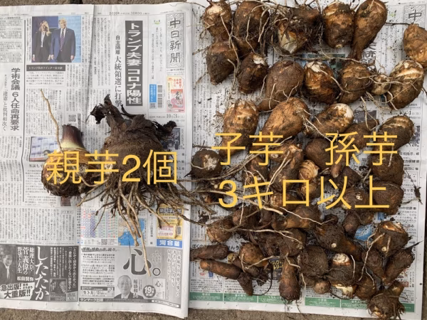 4株で、親芋2.0㎏、子芋孫芋6.0㎏、合計8㎏もあります