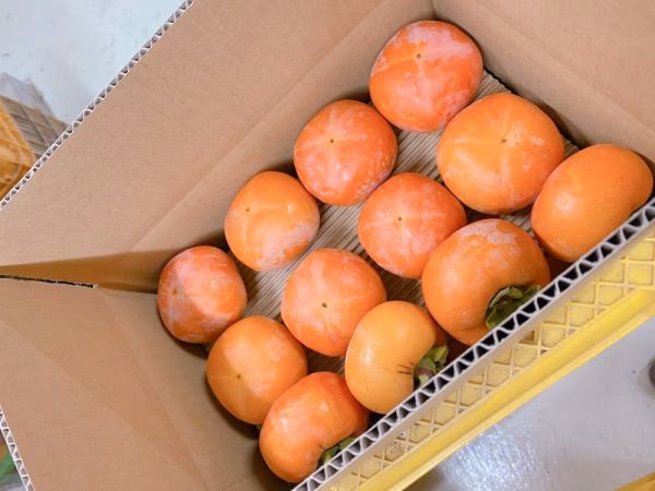 一般的な渋柿はガスを使用し渋抜きをしますが、紀の川柿は実が木に成った状態で渋抜きをする樹上脱渋という製法で作っています。