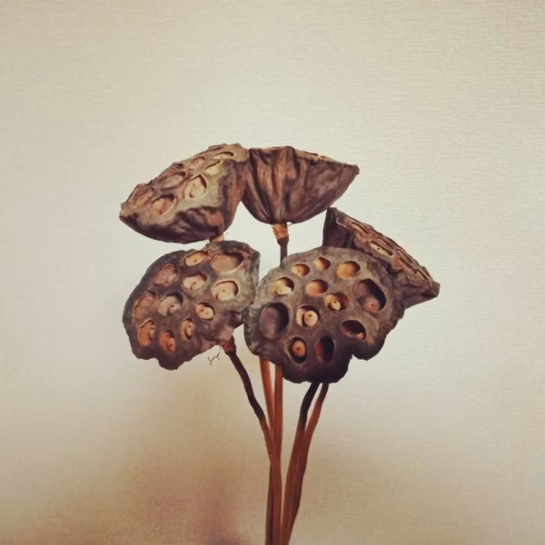 蓮台(ハス)のドライフラワーです。蓮の花が咲き終わった後、蓮台が大きくなって蓮の実が取れますが、秋になると黒くなり、ドライフラワーになります。今年9月~10月にかけて、1本1本田んぼから丁寧に収穫し、その後納屋で乾燥させているものをお届けします。フラワーアレンジやスワッグ、リース作り、お正月のしめ縄などいろいろなお花のアレンジに使えてとっても可愛い蓮台です♪