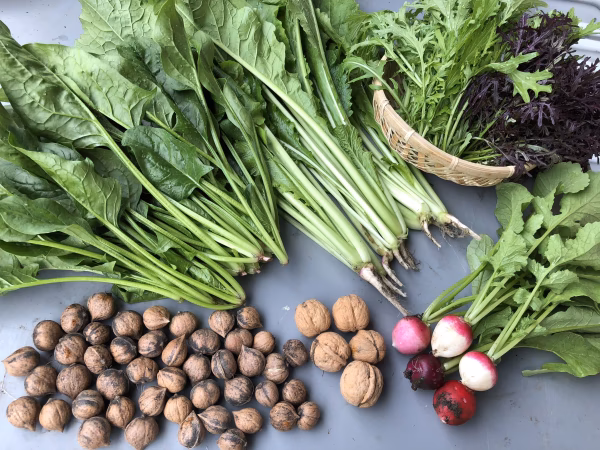 詰め合わせに入っているからし菜やほうれん草に、すった胡桃・砂糖・醤油少々をまぶして食べるのもおすすめ(^^)