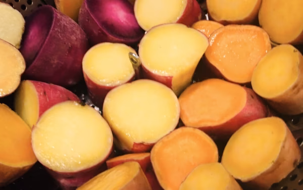 果肉は黄色く粉質で少しねっとり感があり、ホクホクとしたバランスの良い食感が特徴です。加熱することで糖度があがるので、焼き芋や天ぷらにオススメ!