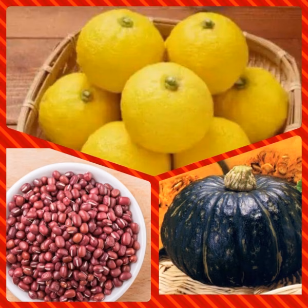 種類は、一才柚子、冬至カボチャ、大納言あずきです。