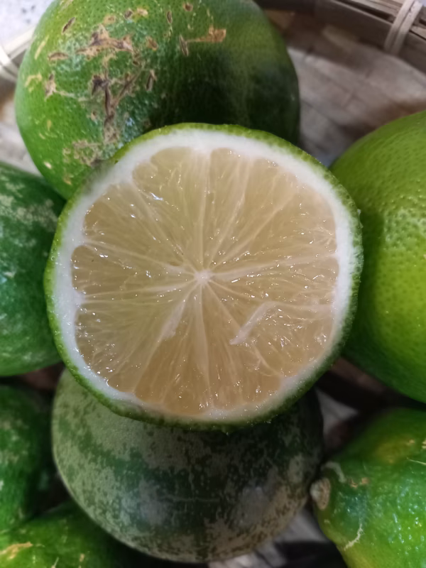 この時期の他のグリーンレモンと比べると果汁も多くい品種を選んでいます