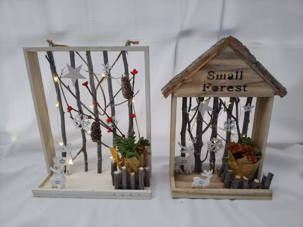 冬の森をイメージした商品。イルミネーションを付けることにより暖かさを感じるインテリア商品です。