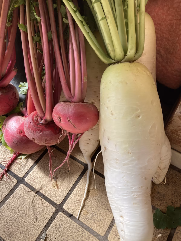 大根が欲しい だけども赤かぶも食べたい。 そんな欲張りさん 大歓迎です。 美味しいものにはどんどん貪欲になりましょ♫ 色も赤と白でめでたい🎉 あ、こいつぁ〜秋でも縁起がいいやぁ〜!! …根菜が混在(ぼそっ)