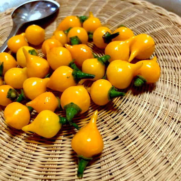 ▼自己紹介 高知県桂浜の近く、砂地の畑で世界各国原産の唐辛子を栽培しています。フレッシュな唐辛子の辛味!風味!香り!は品種によって様々!唐辛子の辛味だけでなく、美味しさをぜひお試しください! ▼商品概要 甘口唐辛子 イエローフォフォお試しサイズ ▼品種・味の特徴・食べ方 ブラジル原産。とにかく可愛い甘口唐辛子!辛味はほとんどありません。スパイシーな香りは、しっかり唐辛子です!生食、ピクルスなど。 ▼数量、分量の目安 50g (30個前後) ▼栽培/生産方法、こだわり 基本的に無農薬ですが、アブラムシの駆除が手作業の域を超えてしまった時だけ有機JASの薬を使うことがあります。予防などには使いません。 ▼注文に際しての注意点(配送方法や納期指定な 定形外でのポストにお届けです!ご注文確定後に収穫〜梱包〜発送いたします。