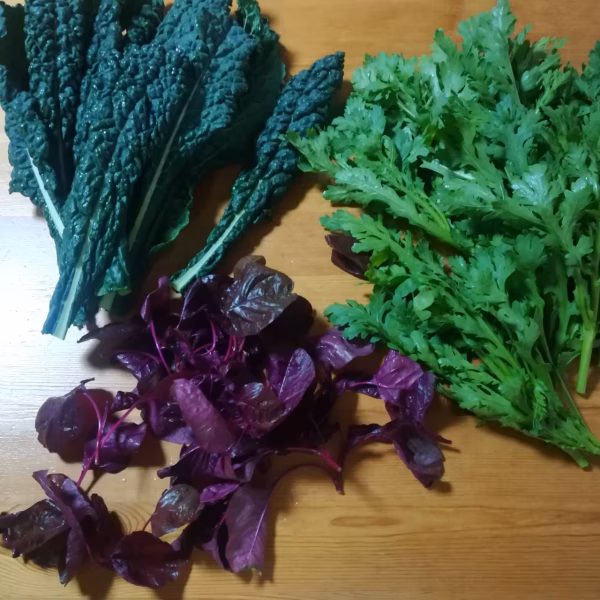 ・カーリーケール〜苦味の少ないケールです。刻んでサラダのアクセントなどに。