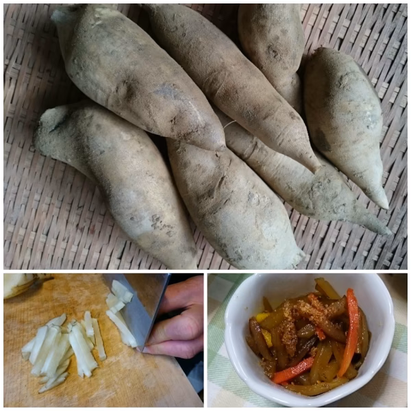 炒め物、煮物、揚げ物、漬物、薄くスライスして生でサラダなど、レシピサイトなどで検索すればいろいろなレシピが見つかります。ヤーコンの切り口は空気にふれると変色するので気になるようでしたら、酢水に少しさらします。わが家はきんぴらにしたり、小さめに切ってカレーに入れることが多いです。