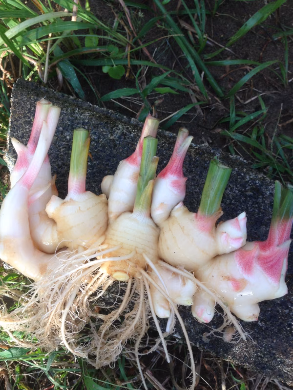 砂丘地の生姜は土がドロドロしてないから汚れが少なくとてもきれいで、縦への肥大傾向が強く、形が良いです。新生姜なので水分も多く、筋は少なく、皮ごと使えて食べやすいです。