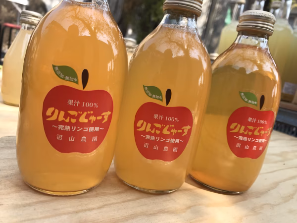 自家栽培の採れたてりんごの風味そのままの果汁100%りんごジュースです。