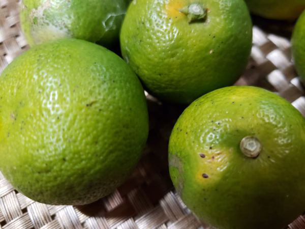 農薬も肥料も使わずに作ったスダチです。見た目はむちゃくちゃ汚ないですが、それは安全の証ではないでしょうか?
