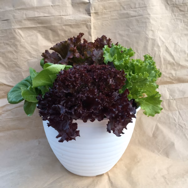 🐢かめっこ農園の生きてるサラダをどうぞ~🐢   レタスのすくすく育っていく姿はそれだけで、私たちに力をくれます。毎朝少しずつ育っていく姿、水をあげた後のきらきらする姿は大人も子どもも元気にしてくれますよ。 なにより、生きてるレタスはとっても美味しいのです。 「いつでも採りたてのレタス美味しさをを、いろんな人に味わってもらいたい。」 「お花みたいなレタスの輝きを見てもらいたい。」 「野菜と一緒にゆっくり暮らす楽しみを感じてもらいたい。」 そんな思いでレタスの寄せ植えを作りました。 レタスは見た目よりもたくましい野菜です。肥料分は入っていますので水とお日さまの光と快適な温度があればどんどん育ちます。最低気温が零度近くなっても霜にさえ当たらなければ大丈夫です。 こちらの商品は2~4種類のレタス4株の寄せ植えです。ベランダや日当たりのいい屋内で、眺めながら育てながら手軽に新鮮野菜が楽しめます。レタスのリズムに合わせて食べたいただくほど長く楽しんでいただけます。(花を咲かせ種を取り、それを発芽させて育てていただいたお客さんもいらっしゃいます。すごい!)  鉢の大きさは直径約23㎝×高さ約16cmです。育ってくるとふんわり盛り上がってきます。  彩りにちょと葉物が欲しい時、パンにはさんで食べたい時など便利です。 見た目も花の寄せ植えのようで、レタスのふわふわ感は眺めていると癒されます。レタスの華やかさと珍しさで、贈り物にも。ご希望があればカードもつけさせていただきます。  畑がない方にも気軽に野菜を育ててもらい、自然を感じる豊かな時間を過ごしてもらえればいいなあと、自分たちも楽しみながら作っています。「植物はいつも枯らしてしまうの」という方も、「レタスポットはなぜか大丈夫でした」というお話をよく伺います。食べられる楽しみから、よく観察してくださるからかもしれません。  鉢の土は、市販の培養土(化成肥料含む)と発酵肥料そして草木などで作った自家製の土が入っています。地元の木や草を利用しました。もちろん無農薬です。  育て方のしおりはつけます。困ったことやわからないことがあれば、こちらの投稿欄やメッセージでどうぞお尋ねください。   生きてる野菜のパワーをどうぞ😋♪  ※鉢物用の梱包資材代が料金に含まれています。 ※レタスの種類は変わっていきます。だいたい写真のような感じです。