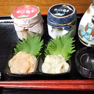 羽前丸自家製、漁師手作り甘エビ&ガサ海老の塩辛&自家製干物1品